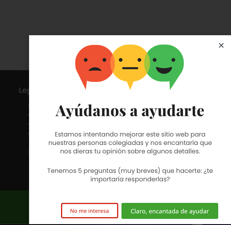 - Cuestionarios y entrevistas: Creé los cuestionarios y entrevistas para usuarios y colegiados.