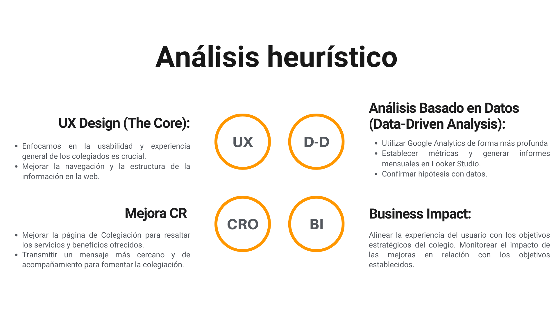 - Problemas: La página era extensa y carecía de contenido exclusivo para colegiados. No destacaba los servicios ni la experiencia de cuidado 360. La falta de atracción de tráfico orgánico era otro problema clave.
